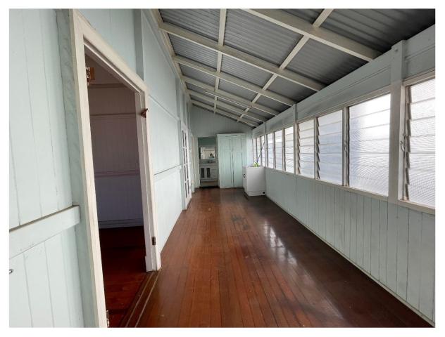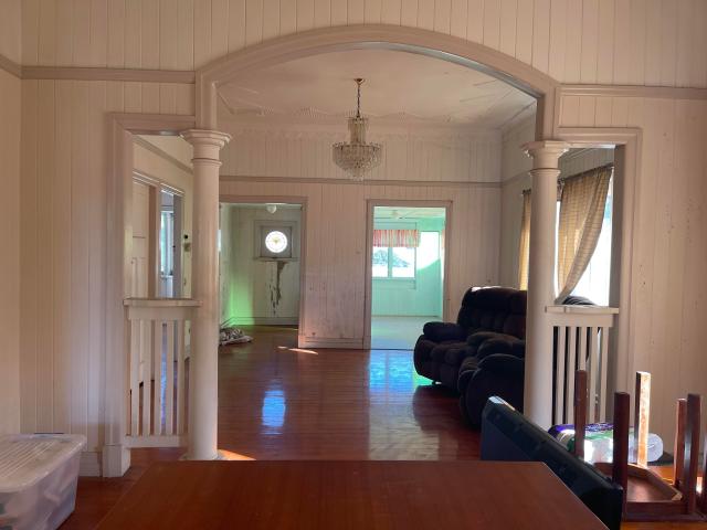 Genuine unrestored Queenslander with an amazing interior. Decorative ceilings fully moulded and plastered. Feature circular timber columns forming a decorative feature living room- dining room divide.Two large bedrooms opening onto a wide verandah. Separate entry off front Veranda.